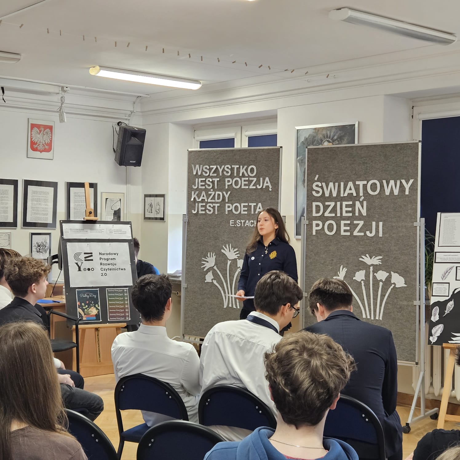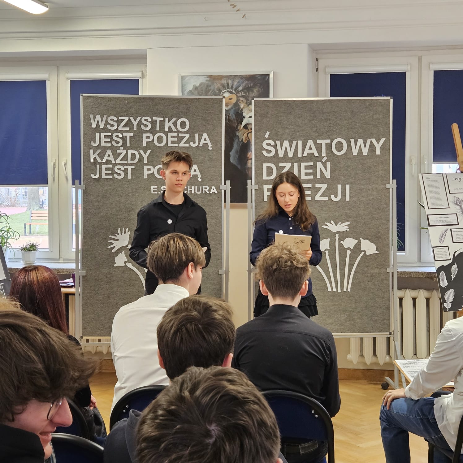 W ramach obchodów Światowego Dnia Poezji, 20 marca, w naszym liceum odbyło się wyjątkowe spotkanie liryczno-muzyczne, które wprowadziło uczestników w pełen refleksji i emocji nastrój. Uczniowie klasy 1B zaprezentowali zarówno utwory znanych poetów, jak i własną twórczość, dzieląc się osobistymi przemyśleniami i wrażliwością artystyczną. Nastrojowa oprawa muzyczna podkreśliła klimat wydarzenia, tworząc spójną i poruszającą całość.
