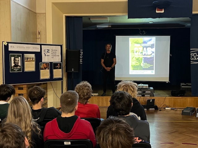 W ramach realizacji Narodowego Programu Rozwoju Czytelnictwa 2.0 w naszej szkole odbyło się spotkanie z podróżnikiem, pisarzem i dziennikarzem Arunem Milcarzem. Uczniowie z dziewięciu klas uczestniczyli w spektaklu, który stanowił połączenie dwóch form ekspresji: autorskich, dokumentalnych zdjęć filmowych przeplecionych charyzmatycznym reporterskim standupem.